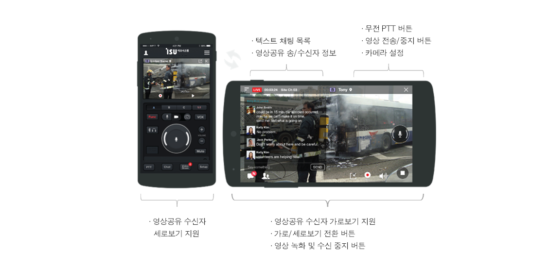 영상 수신 중 PTT 버튼을 눌러 음성 송신 가능
