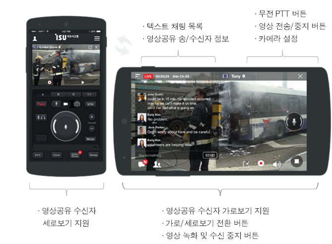음성/영상 무전 중 위치 정보 전송 및 상대방 위치 조회 가능